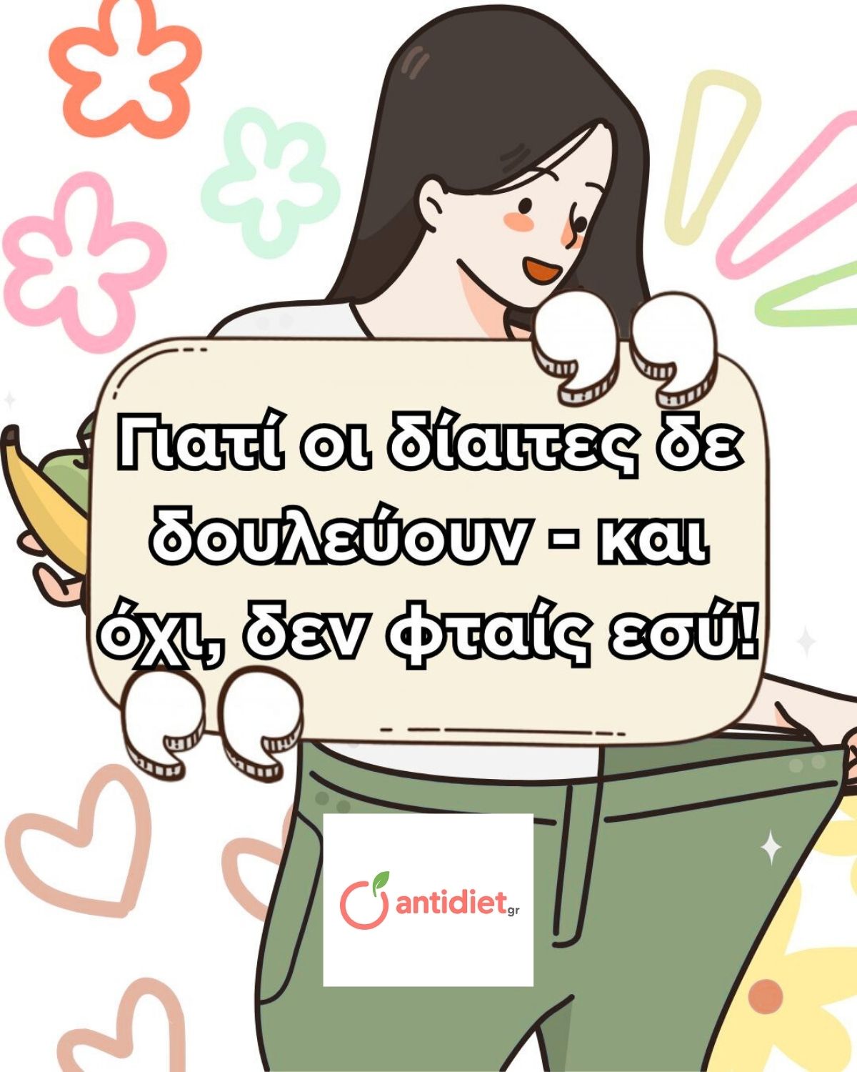 Πόσες φορές έχεις ξεκινήσει δίαιτα με ενθουσιασμό, μόνο και μόνο για να βρεθείς λίγες εβδομάδες μετά απογοητευμένος/η, εξαντλημένος/η και – συχνά – πεινασμένος/η; Αν αυτό το σενάριο σου φαίνεται οικείο, δεν είσαι μόνος/η. Το πρόβλημα δεν είναι η δύναμη της θέλησής σου. Είναι οι ίδιες οι δίαιτες.