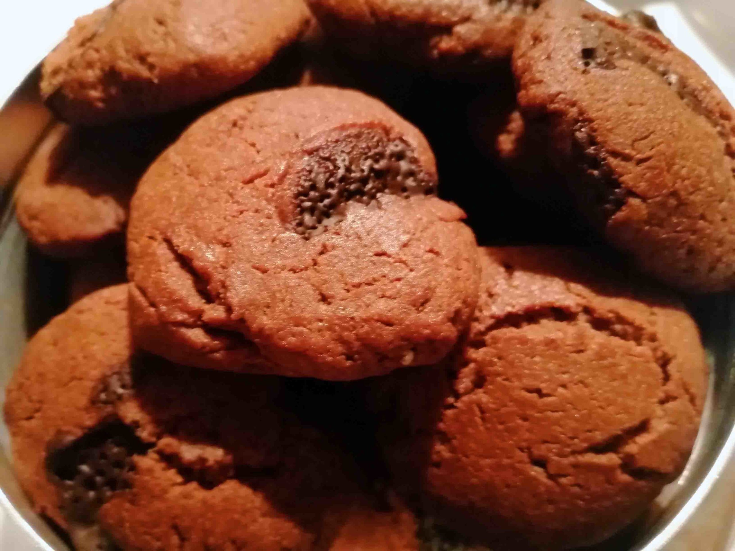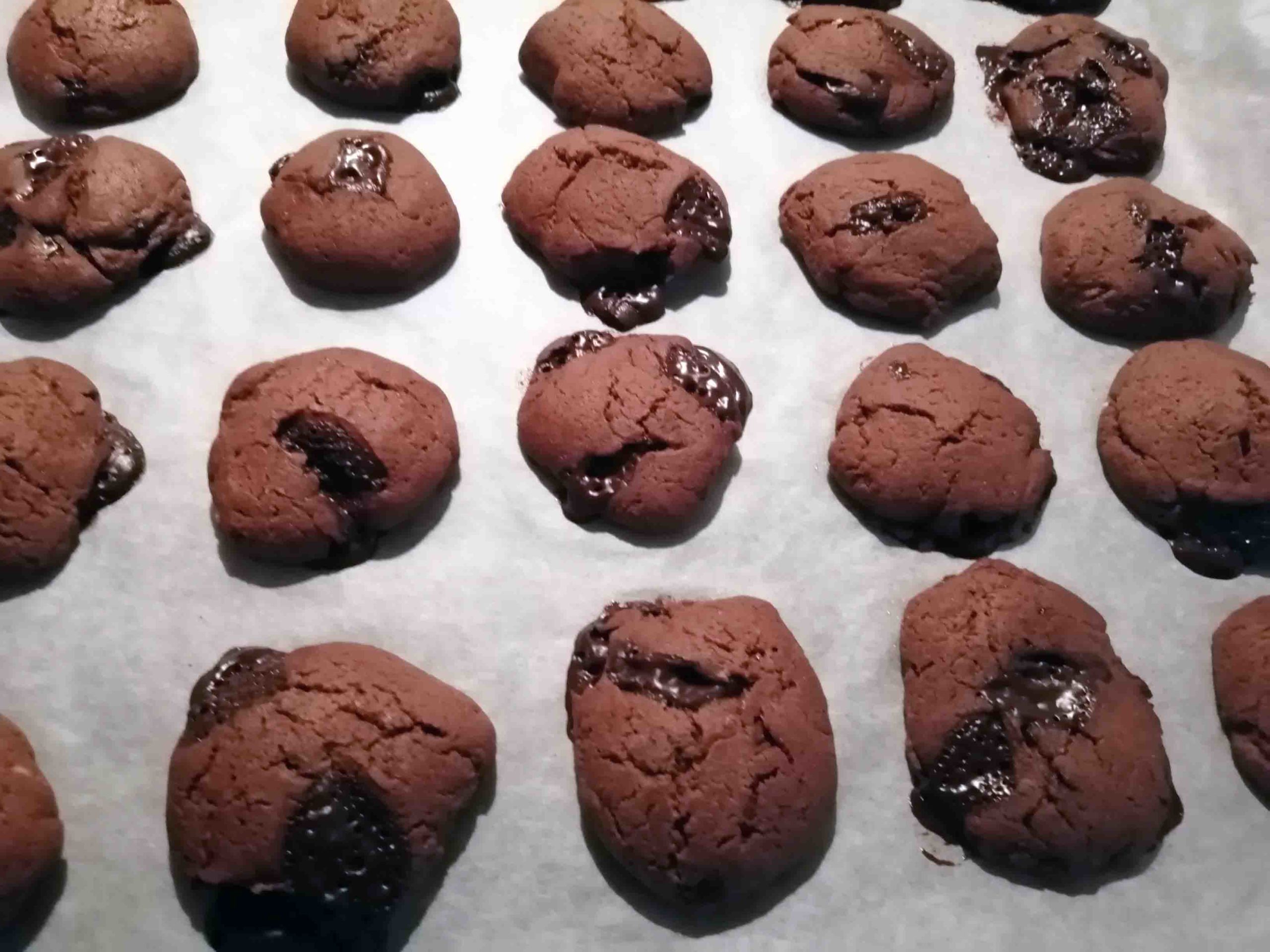Ψήνετε σε αντιστάσεις στους 175 βαθμούς ή στους 155 βαθμούς με αέρα για 8 λεπτά αν πρόκειται για μπισκότα ή για 9 -10 λεπτά αν κάνετε μαφινάκια.